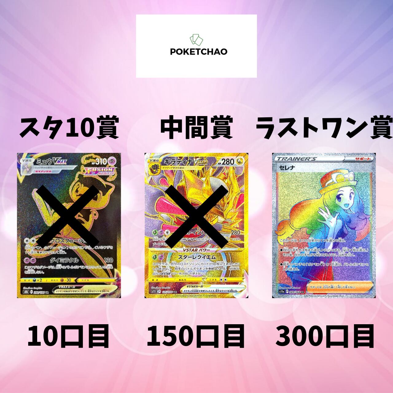 ・各賞あり スタ10賞(10口目)中間賞(150口目)ラストワン賞(300口目)
